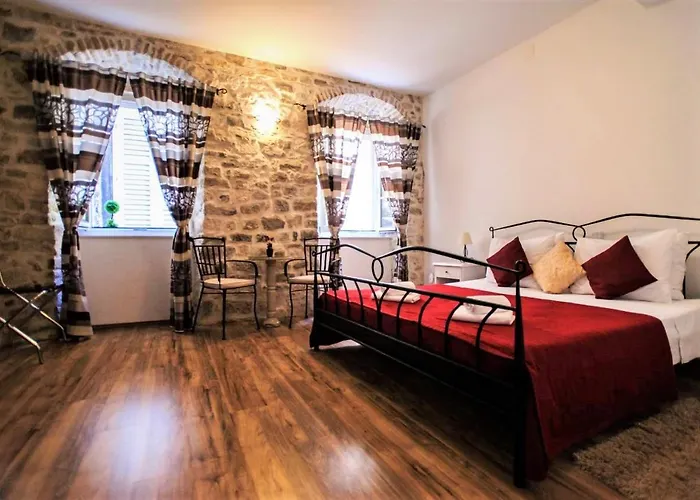 Peristil Aurea- Split center ferielejlighed ligger i centrum af Split, inden for kort afstand til Diocletians Palads. Lejlighed består af 1 soveværelser, 1 badeværelser og også et køkken.